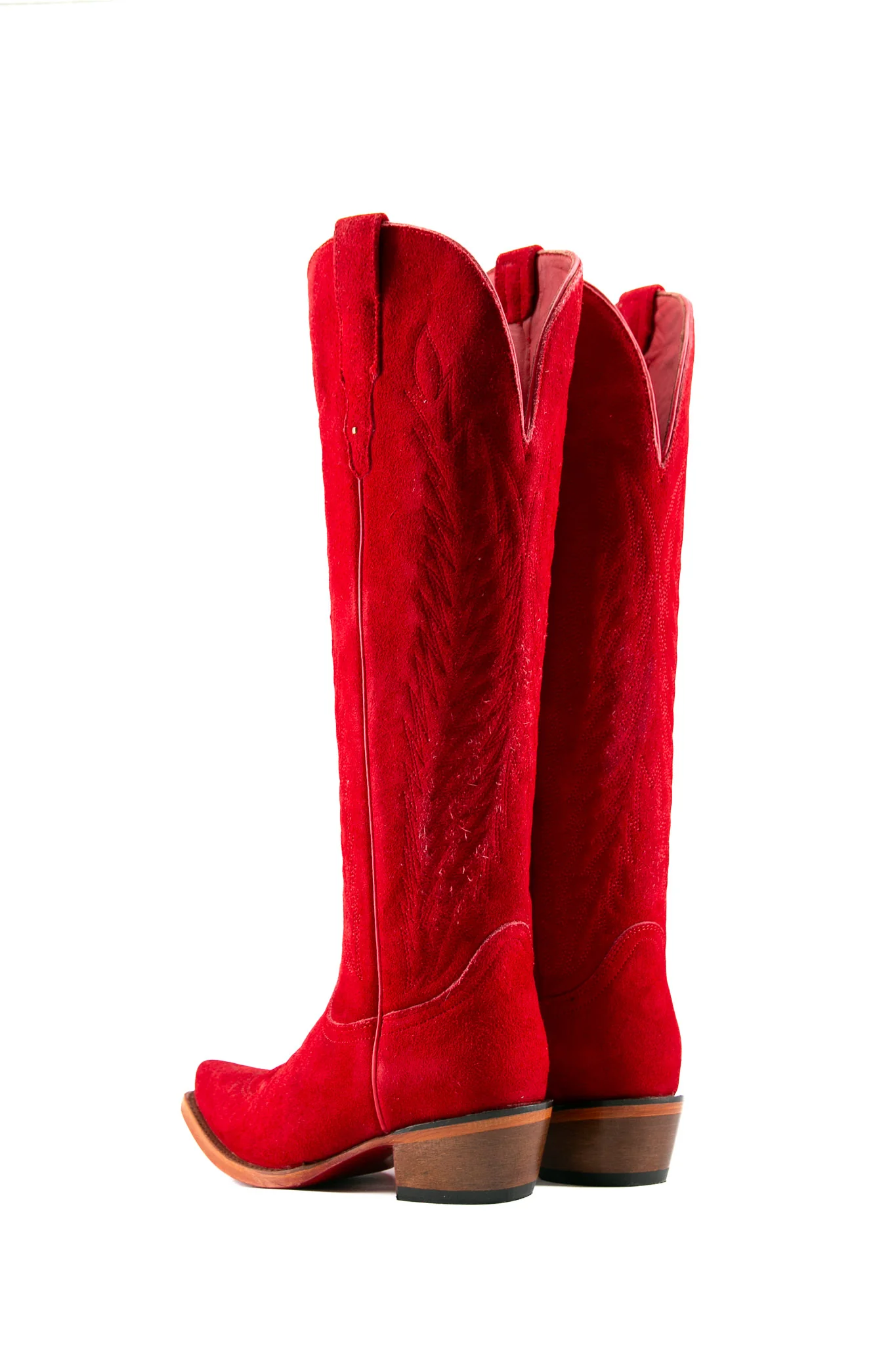 Georgina Suede Tall Red Bottom Snip Toe Cowgirl Boot